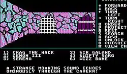Загін шукачів пригод під управлінням гравця переміщується по зображених у псевдо 3D лісах, полях, підземеллях, населених монстрами. При зіткненні з групою монстрів, включається режим бою, сам бій відбувається окремо від картки пригод. Використання магії виглядає як введення з клавіатури рівня і номера заклинання. Персонажі можуть носити на собі і в рюкзаку різноманітні предмети, такі як обладунки, зброю.