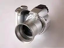 У січні 2002, Minolta знову створила нову категорію камер, презентуючи модель Minolta DiMAGE X, ультракомпактну цифрову камеру із 3-кратним складаним об'єктивом типу «зум». Завдяки можливості складання, жодна рухома частина об'єктиву не виходить за межі корпусу камери. Натомість, дзеркальце під кутом 45 градусів відбиває світло до звичайної збільшувальної лінзи, безпечно втисненої в корпус камери. Короткий час активації — це одна з потенційних переваг цього дизайну (оскільки ніяка частина не потребує розширення чи подовження), але повільний фокус та часті затримки реакції затвору затьмарили будь-які переваги цього нововведення.