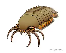 Тіло близько 5 см завдовжки. Це членистоногі з сплощеною витягнутою формою тіла, з декількома парами довгих ходильних ніг і передніми хеліцероподобними придатками. Зовні тварини нагадували мокриць або трилобітів. Вони були майже прямокутними дорсально і майже трикутними в поперечній проекції. Спинний екзоскелет, складався з головного щита, семи грудних сегментів (тергітів) і хвостового щита, що має осьовий гребінь. Грудні сегменти були приблизно однакової довжини і ширини. Хвостовий щиток мав дві або три пари поперечних подовжень на поверхні. Ймовірно були придонними бентичними хижаками.