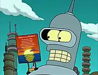 - Повстання роботів пародіює соціалістичну революцію. Це зокрема очевидно завдяки діалогам між Бендером і електронною вітальною листівкою, в якій рясно трапляються елементи марксистського лексикону (зокрема слова «товариш» і «буржуазія»).