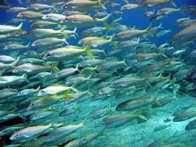 Mulloidichthys flavolineatus може утворювати великі зграї.