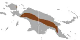Цей вид має широке розповсюдження у Центральних Кордильєрах острова Нова Гвінея на висотах 1400—2800 м над рівнем моря. Населяє тропічний дощовий ліс, серединногірський ліс, буковий ліс, панданний ліс і моховитий ліс. Використовують як деревні так і підземні гнізда.