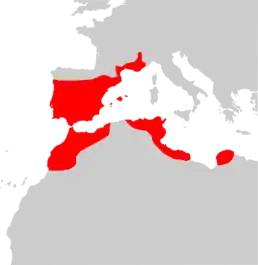 Це ендемік Середземноморського регіону, що проживає в Південно-Західній Європі й Північній Африці від Марокко через північний Алжир і Туніс в північну Лівію. У Європі він знаходиться в Португалії, Іспанії, на Балеарських островах (Іспанія), і південній Франції. Його висотний діапазон проживання: від рівня моря до 1800 м. Вид знаходиться в луках, сухих чагарниках, зернових полях і рідколіссях. Відсутній у густому лісі і, як правило, уникає людських поселень. Їх обмежені потреби у воді (половина кількості води, від хатньої миші) дозволяє їм населяти посушливіші області, ніж інші миші.
