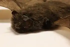 Шерсть довга й кошлата. Спинна частина темно-коричневого кольору з кінчиками волосся, які дають більш сивий зовнішній вигляд, черевна частина світліша й жовто-бура. Морда густо вкрита волоссям крім невеликої ділянки над очима. Вуха довгі і вузькі. Крилові мембрани темно-коричневі. хвіст довгий.