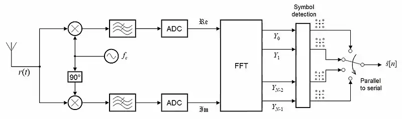 Для демодуляції N-OFDM сигналів, що являють собою сукупність гармонійних, неортогональних за частотою піднесучих, на прийомній стороні може використовуватися вейвлет-фільтрація. В найпростішому випадку це може бути система ортогональних за частотою вейвлет-фільтрів, що синтезують на основі вейвлет-перетворень, які породжують АЧХ з зручним аналітичним описом[19]. Прикладом таких вейвлетів є гармонійні сплески та вейвлет Морлє[20].