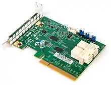 - Для підключення бекплейнів з підтримкою накопичувачів U.2 до шини PCI Express використовуються кабелі з роз'ємами OCuLink або SFF-8643[прим. 2], що забезпечує підключення чотирьох ліній PCI Express. Кабель може підключатися до спеціального гнізда на системній платі, у звичайний слот розширення PCI Express через плату-ретаймер[що це?] або до роз'єму M.2 через перехідник.