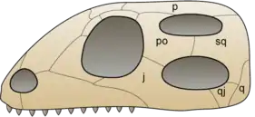 ![]() Будова черепа діапсидів | ||||||||||||||||||