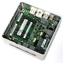 | Evo Technologies | ECOPC N.1 | 945GSE | Atom N270 (x86) | 10–16W with 2.5 SSD (18W with 2.5 HDD)[30] | Так | Optional | VGA, DVI-D |