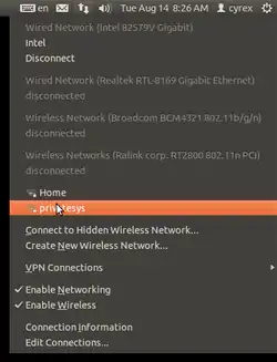 ![]() меню NetworkManager в Ubuntu | |