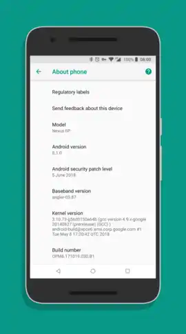 ![]() Передня частина Nexus 6P, що працює на Android 8.1.0 | |