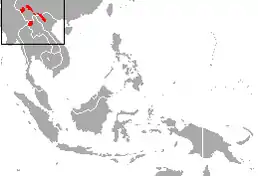 Мешкає в китайській провінції Юньнань, на крайньому північному заході Лаосу і північному В'єтнамі. Цей вид зустрічається в субтропічних і гірських вічнозелених, напів-вічнозелених і листяних лісах. Чисельність населення в світі оцінюється приблизно в 1,300-2,000 осіб (2006). В основному живе вище 500 м.