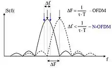 Отже, якщо записати вираз для частотного інтервалу між піднесними у вигляді , то випадок буде відповідати OFDM.