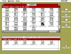![]() OpenGEM показує іконки жорсткого диску та CD-ROM (праворуч) | |