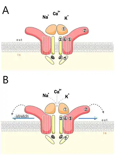 Нещодавно відкрита родина механочутливих йонних каналів Piezo налічує 2 механорецептори, Piezo1 та Piezo2, що були відокремлені через наявність специфічної послідовності - CED-домену, який збігається в 2-х членах родини на 54%[8].