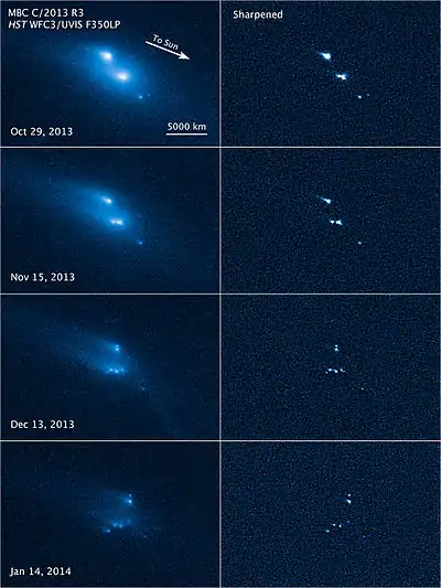 - P/2013 R3 — відкриття, здійснене Pan-STARRS 15 вересня 2013 року: розпад спостерігався телескопом «Габбл»[16].
