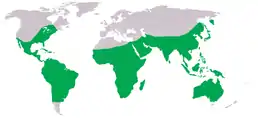 Pantala flavescens розглядають як найпоширеніший вид бабок на планеті[3]. Він відсутній лише в Європі та Антарктиді, поширений у Африці, Азії, Північній і Південній Америці. У Північній Америці на північ заходить до Аляски та Нової Скотії.[1]