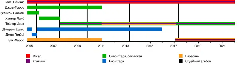 - Гейлі Вільямс — вокал (2004 - наш час).