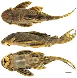 - Fisch-Muller, S., 2003. Loricariidae-Ancistrinae (Armored catfishes). p. 373—400. In R.E. Reis, S.O. Kullander and C.J. Ferraris, Jr. (eds.) Checklist of the Freshwater Fishes of South and Central America. Porto Alegre: EDIPUCRS, Brasil.