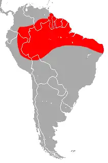 Країни поширення: Болівія, Бразилія, Колумбія, Французька Гвіана, Гаяна, Перу, Суринам, Венесуела. Знаходиться на низькій висоті. Цей вид відомий погано. Сідала знаходяться в печерах, дуплах дерев, у порожнистих гнилих колодах на землі або під нависаючими берегами. Харчується в повітрі на відкритому просторі комахами.