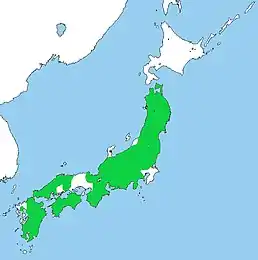Ендемік Японії. Трапляється на островах Кюсю, Хонсю та Сікоку. Живе в бореальних вічнозелених або субальпійських лісах.