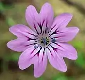 Однорічна трава від 25 до 60(90) сантиметрів заввишки. Листя довжиною до 6 см. Суцвіття — голова. Пелюстки від яскраво-рожевого до пурпурного або лавандового кольору з більш темними жилками. Плід — капсула, яка містить багато крихітного насіння.