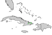 Ендемік східної частини Куби. Цей вид зустрічається в передгір'ях і гірських районах, а також в «соснових пустках» уздовж узбережжя. Його діапазон висот від 100–900 (-1200) м над рівнем моря. Типові субстрати включають серпантини або інші залізисті ґрунти; прибережні рослини стоїть на алювію. Натуралізований в Еквадорі.