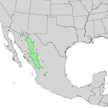 Країни поширення: Мексика (Чіуауа, Коауїла, Нуево-Леон, Сіналоа, Сонора, Сакатекас); США (Аризона, Нью-Мексико). Живе на помірно сухих, літом теплих відкритих гірських схилах або плато на висотах між (1200)1500–2700(3000) м над рівнем моря, найбільш рясно між 2000—2500 метрів на бідних кам'янистих (вулканічних) ґрунтах, а також на алювіальних пісках/ гравіях або супісках. Клімат помірний, річна кількість опадів від 400—700 мм, збільшується на південь. Над 2000 м мороз і сніг є нормою в зимовий період.