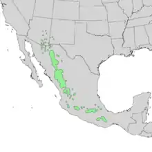 Являє собою дерево з ареалом, що охоплює в першу чергу Мексику, з невеликим поширенням в США на південному сході Аризони і південно-заході Нью-Мексико. Мексиканський діапазон простирається уздовж Сьєрра-Мадре Західна і Сьєрра-Мадре-дель-Сур від Чіуауа до Оахаки, від 29 ° північної широти до 17 °, на висоті від 1600 до 3000 метрів над рівнем моря. Цей вид потребує опадів приблизно від 600 до 1000 мм на рік, в основному в літній час. Добре переносить морози взимку.
