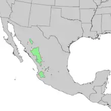 Країни зростання: Мексика: Сьєрра-Мадре, в штаті Чіуауа, Сіналоа, Дуранго, Наярит, Халіско, Сакатекас, Аґуаскальєнтес і Гуанахуато.[3]