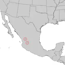 Ендемік Мексики. Фактична площа зростання оцінюється в близько 35 км2. Зустрічається на пісковиках або вапняках, а також метаморфічних, скелястих ґрунтах. Кількість опадів ≈ 700–800 мм на рік, практично обмежені 4 місяцями в літній час. Діапазон висот: 1750–2400 м над рівнем моря.