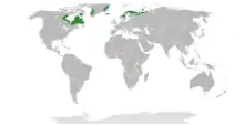 Європа (Фінляндія, Ісландія, Норвегія, Росія, Швеція); Північна Америка (Гренландія, Канада). Населяє прибережні райони, особливо дюни, болота, берегові вали, прибережні скельні оголення, кам'янисті береги, а також береги струмків та річок.