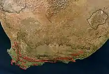 Росте узбережжям Південної Африки до висоти 1500 м над рівнем моря.