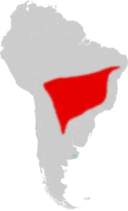 ![]() Мапа ареалу Pseudoryzomys у Південній Америці (червоний); скам'янілості у Куева Тіксі, східна Аргентина (синій). | ||||||||||||||||||||||||