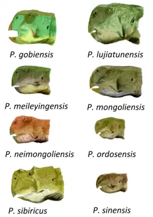 Psittacosaurus — рід невеликих базальних цератопсів, що існували в ранній крейді на території сучасної Азії. Описано 8 видів. Відомий за рештками сотень екземплярів. Завдяки такій кількості решток відомі деякі деталі онтогенезу, покривних структур, механіки щелеп і патологій пситакозаврів[1].