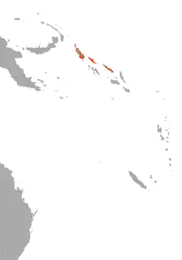 Країни поширення: Папуа Нова Гвінея, Соломонові острови. Висотний діапазон: від рівня моря до 200 м над рівнем моря. Цей вид, як видається, повністю залежить від старовікових лісів низовини.
