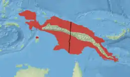 Цей вид зустрічається по всій низовині острова Нова Гвінея (Індонезія та Папуа Нова Гвінея), на острові Салаваті (Індонезія), і островах Ару, (Індонезія). Зазвичай живе нижче 500 м над рівнем моря. Цей вид був записаний з декількох типів низовинного середовища проживання, включаючи як первинні, так і вторинні тропічні вологі ліси, мусонні ліси, сухі ліси, савани, ліси, плантації, сади, дуже поширений в прибережних мангрових лісах.