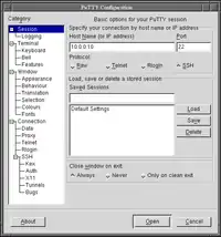 ![]() Головне конфігураційне вікно PuTTY 0.58 під FVWM | |