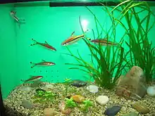 Рекомендований об'єм акваріуму — від 200 літрів. Акваріум має бути закритий кришкою (щоб рибки не вистрибували). Необхідно забезпечити постійний потік води в акваріумі, який б імітував течію річки.