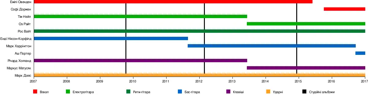 - Марк Харрінгтон – бас-гітара (2011–2016)