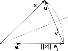 Перше, нам потрібно знайти відбиття, що перетворює перший стовпчик матриці A, вектор , у