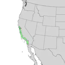 Ендемік узбережжя Каліфорнії, США й півночі Нижньої Каліфорнії, Мексика[4][5][1].