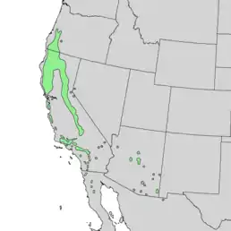 Поширений у штатах Каліфорнія, Аризона, пд. Невада, пд.-зх. Нью-Мексико, пд.-зх. Орегон — США й на півночі штатів Нижня Каліфорнія та Чихуахуа — Мексика[1][4].