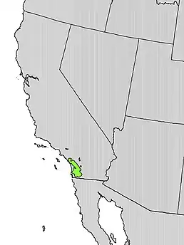 Ендемік Каліфорнії, США й північного сходу Нижньої Каліфорнії, Мексика[1][4].