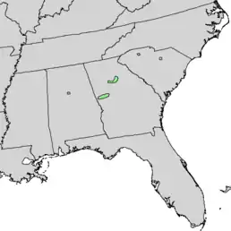 Ендемік штатів Алабама і Джорджія, США; ймовірно, вимер у штатах Північна Кароліна і Південна Кароліна[2].