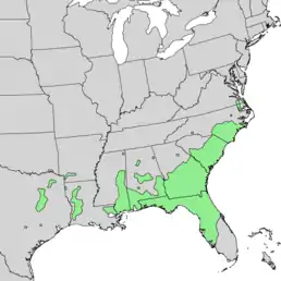 Ендемік південного сходу США: Південна Кароліна, Міссісіпі, Алабама, Джорджія, Оклахома, Вірджинія, Флорида, Північна Кароліна, Техас, Арканзас, Луїзіана[2].