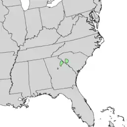 Ендемік штатів Південна Кароліна, Міссісіпі, Джорджія, Алабама, Луїзіана — США[2].