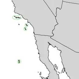 Ендемік Канальних островів (Санта-Роза, Санта-Круз, Анакапа, Санта-Каталіна та Сан-Клементе) біля узбережжя Каліфорнії, США й острова Гваделупе, Мексика[2].