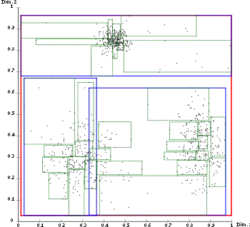 | Дія різних евристик розщеплення на базі даних із поштовими округами Німеччини | ||||||