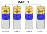 - RAID Levels 30 (Рівень 30): Комбінує (об'єднує) RAID 0 і RAID 3, тобто використовується контрольна сума для групи дисководів, об'єднаних в RAID 0 для забезпечення максимальної швидкодії. Інформація про парність може використовуватися для відновлення даних.