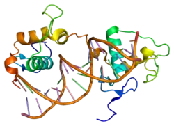Кодований геном білок за функціями належить до рецепторів, фосфопротеїнів. Задіяний у таких біологічних процесах як транскрипція, регуляція транскрипції, поліморфізм, альтернативний сплайсинг. Білок має сайт для зв'язування з іонами металів, іоном цинку, ДНК. Локалізований у цитоплазмі, ядрі.